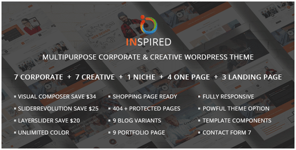 Inspired é um poderoso tema WordPress de Bootstrap multifuncional. Compre um tema… e você pode criar alguns sites legais, não importa o tipo de negócio. Então, o que você está esperando se o Inspired for capaz de lidar com todas as necessidades de design para vários projetos