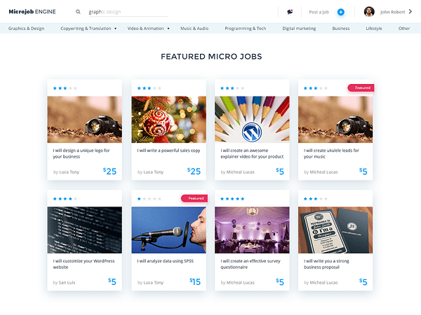 Jessica é designer e quer ganhar dinheiro extra com suas habilidades de design em seu tempo livre. Com o MicrojobEngine, você pode ajudar Jessica a construir um perfil respeitável, oferecer serviços impressionantes e alcançar mais clientes.